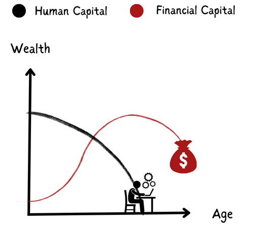 When you are young, you have plenty of time ahead to produce, but little money accumulated. In old age, it is the opposite.