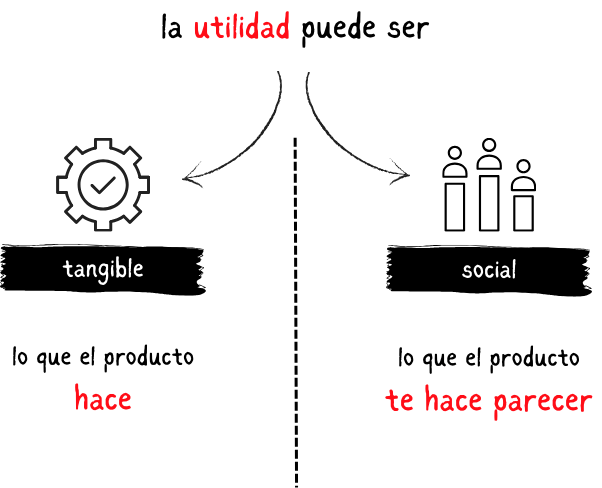 Los productos que compras te ofrecen utilidad. Esto significa que, de una forma u otra, mejoran tu vida. Mientras que unos productos te ofrecen utilidad tangible (como un colchón), otros te ofrecen utilidad intangible o social. El precio de un Rolex, por ejemplo, no se justifica por su capacidad para medir el tiempo, sino por su utilidad en términos de estatus.
